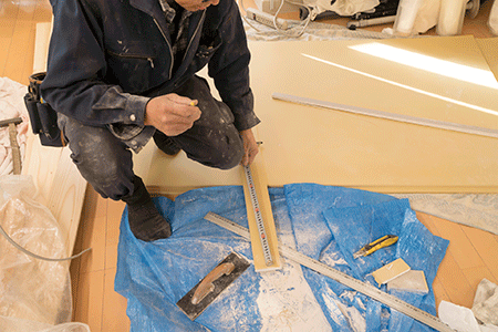 主に壁の取り付けや壁紙や床のフローリングなどの貼り付け、天井の仕上げなどの工事をします。